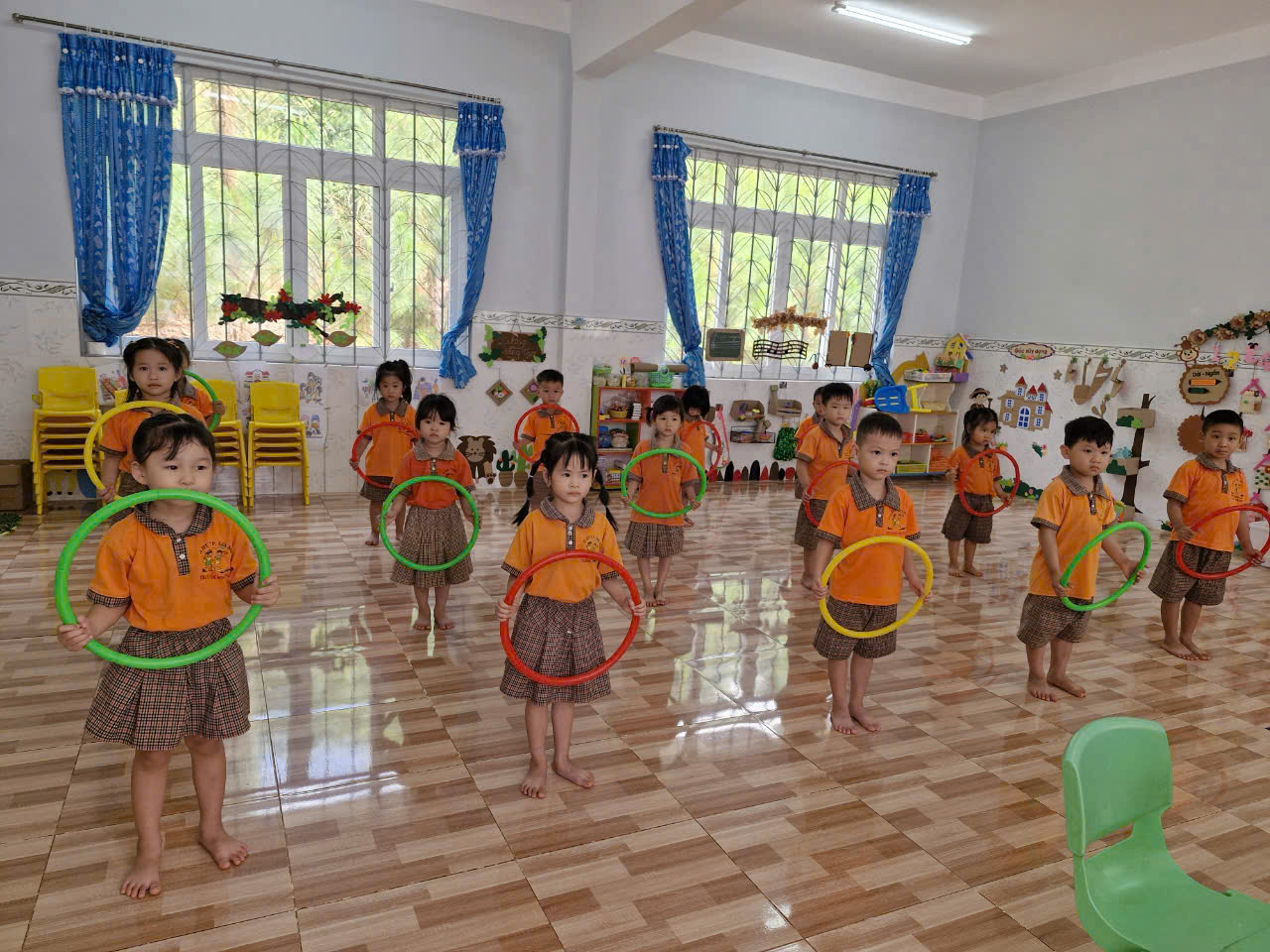 Bên cạnh dinh dưỡng, hoạt động vận động thể chất được nhà trường xem là yếu tố quan trọng trong việc giúp trẻ phát triển toàn diện. Trường Mầm non Sơn Ca đã đầu tư sân chơi, đồ dùng, thiết bị thể chất phù hợp theo độ tuổi, tổ chức nhiều hoạt động thể dục sáng, trò chơi vận động, ngày hội thể thao, giúp trẻ rèn luyện sự nhanh nhẹn, khéo léo, dẻo dai. Ngoài ra, giáo viên còn hướng dẫn trẻ các động tác thể dục nhẹ nhàng, bài tập yoga, nhảy múa theo nhạc nhằm giúp trẻ tăng cường sức đề kháng, phát triển chiều cao và cân nặng hợp lý.