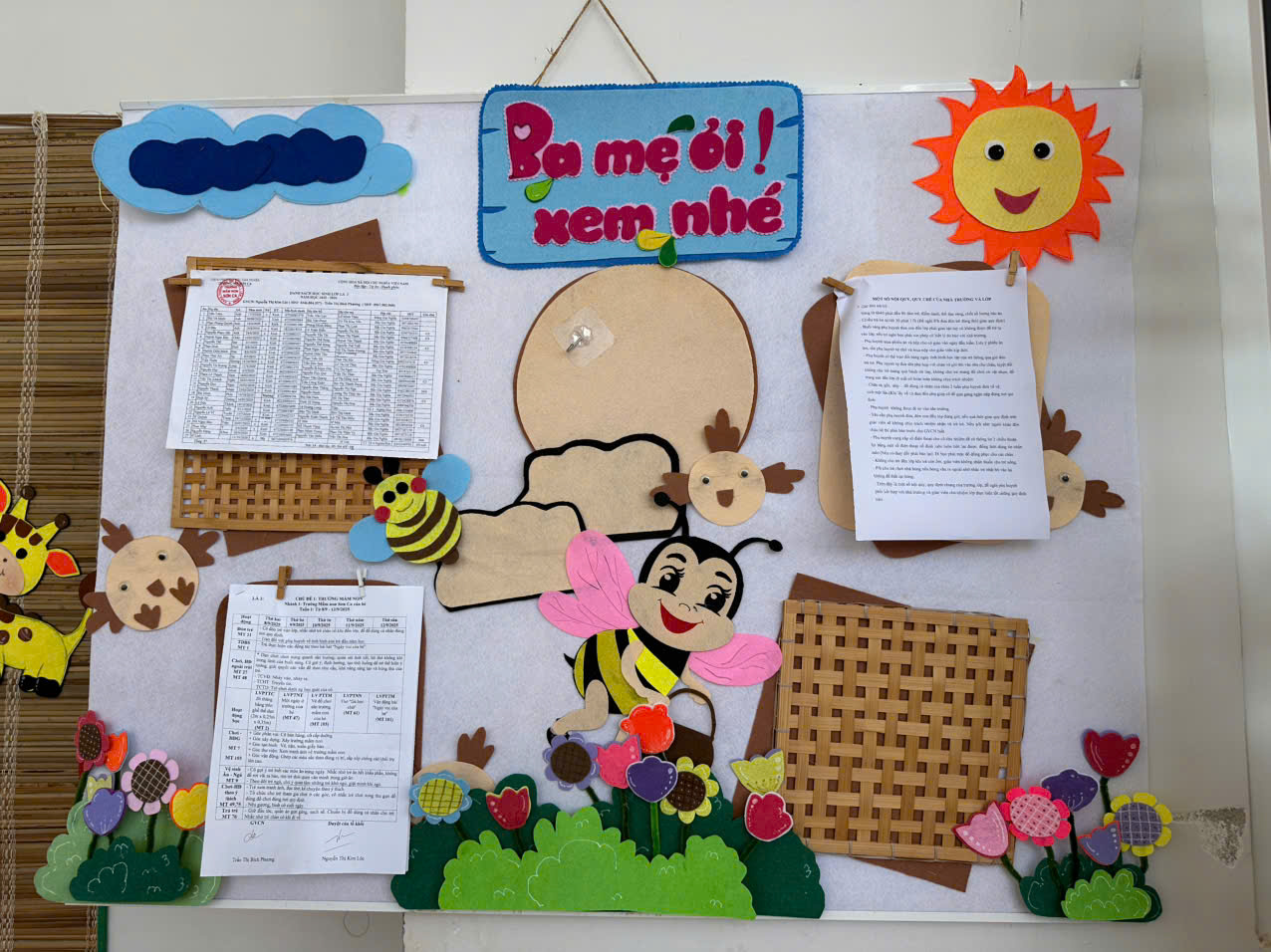Nhà trường thường xuyên phối hợp với phụ huynh trong việc chăm sóc dinh dưỡng, trao đổi thực đơn, chia sẻ kiến thức về khẩu phần ăn hợp lý cho trẻ tại nhà. Các buổi tuyên truyền, tọa đàm giúp phụ huynh hiểu rõ hơn vai trò của dinh dưỡng và vận động đối với sự phát triển của trẻ nhỏ.