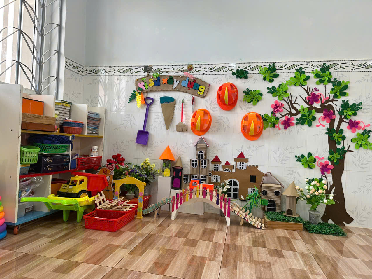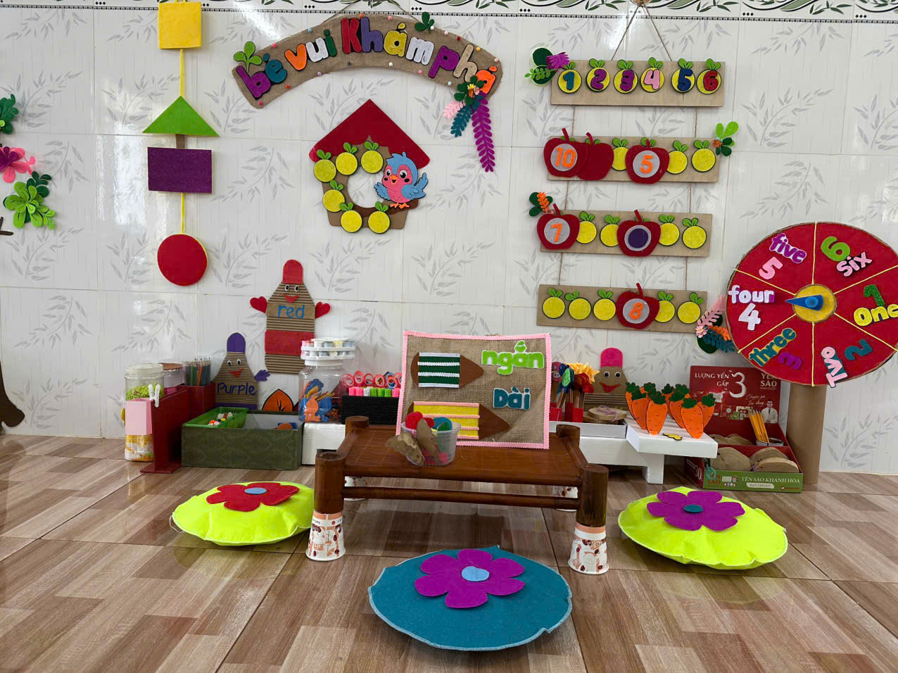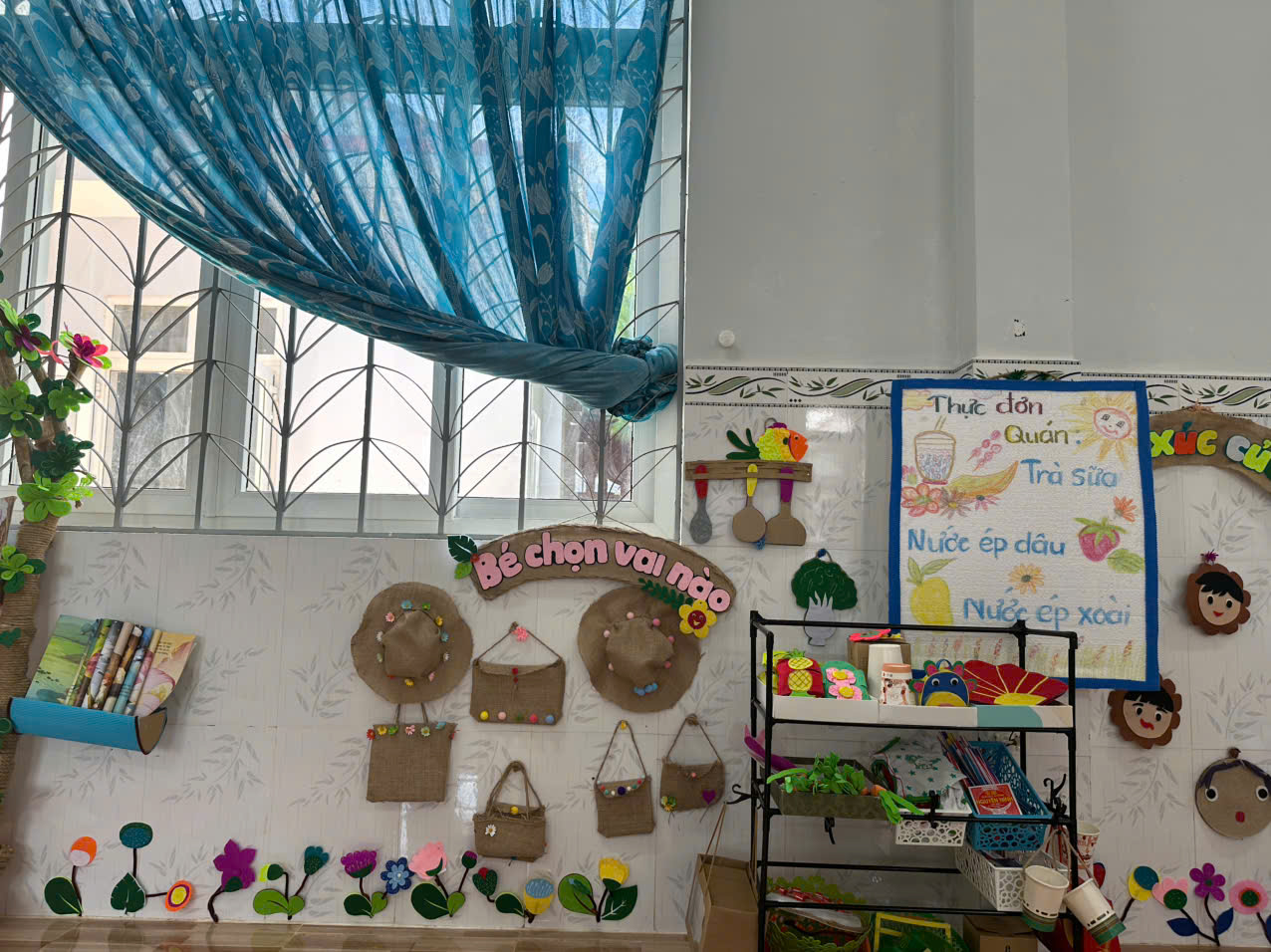 Nhà trường đã chủ động xây dựng môi trường học tập thân thiện, gần gũi và an toàn, giúp trẻ dễ dàng tiếp cận các kiến thức cơ bản về dinh dưỡng. Các góc phân vai “Bé vui học về thực phẩm”, “Bé làm đầu bếp nhí” được trang trí sinh động, trưng bày hình ảnh thực phẩm, rau củ, trái cây quen thuộc với cuộc sống hằng ngày. Thông qua đó, trẻ được hướng dẫn nhận biết các nhóm thực phẩm, lợi ích của ăn uống đủ chất, hình thành thói quen ăn uống lành mạnh ngay từ lứa tuổi mầm non.